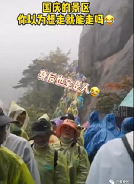 看著這前不見頭后不見尾的長長隊伍。有人直喊“我后悔了,我不想出來玩了,我想回家!”讓人苦笑不得。網(wǎng)友:國慶的景區(qū)你以為想走就能走嗎?